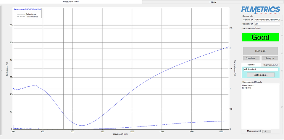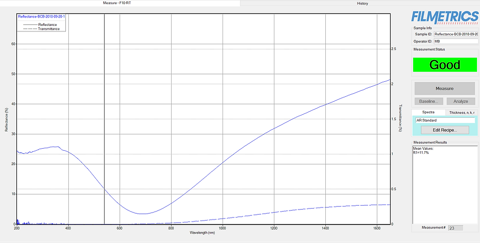 Figure 7 & 8: BRC Spectral Reflectance and Film Thickness analysis.